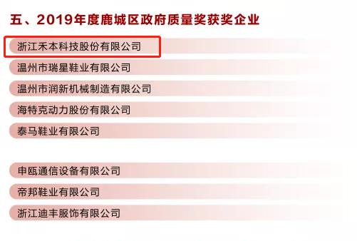 5月25日上午,鹿城区经济高质量发展大会隆重召开,现场隆重表彰了一批先进个人和先进集体。bet365体育平台在各类榜单中表现抢眼,斩获众多奖项,荣获“2019年度鹿城区功勋企业”“2019年度鹿城区工业30强”“2019年度鹿城区政府质量奖获奖企业”“2019年度鹿城区科技工作先进单位”“2019年度鹿城区开放型经济工作先进单位”等多个奖项。公司总经理曾挺获评“2019年度功勋企业家”荣誉称号。
